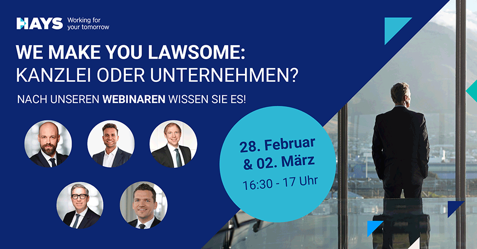 Stehen Sie – wie viele Juristinnen und Juristen – hinsichtlich des Berufseinstiegs auch vor der großen Frage: Starte ich meine Karriere in einer Kanzlei oder in einem Unternehmen? In den Formaten der Eventreihe we make you lawsome erhalten Sie Insights aus erster Hand: Kandidatinnen und Kandidaten teilen ihre Erfahrungen aus Kanzlei- oder Unternehmenssicht und sprechen über Ihren Berufseinstieg.