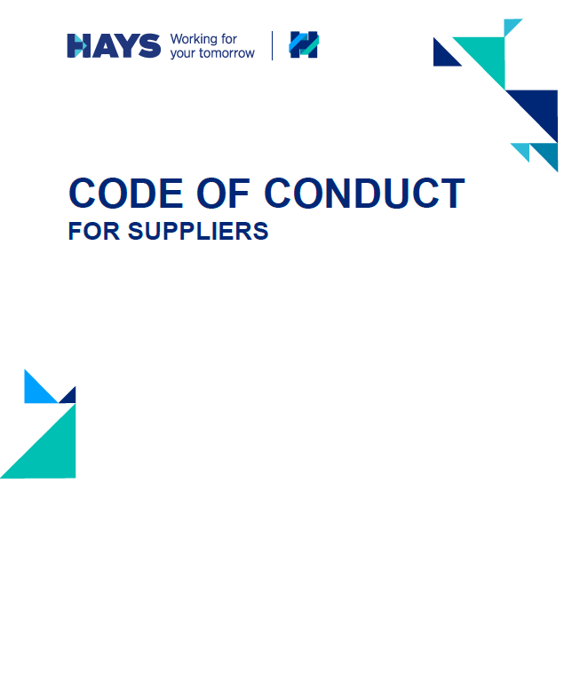 In order to ensure compliance with human rights along our supply chain, we adopted our supplier code of conduct as one of the first measures in 2021. We are currently in the process of establishing this code of conduct with suppliers as an integral part of contract updates and new orders. The supplier code of conduct defines the minimum legal and ethical standards that apply to all suppliers who maintain business relationships with Hays – including those related to human rights, occupational health and safety and environmental protection. By signing the supplier code of conduct, suppliers declare that they comply with these principles.