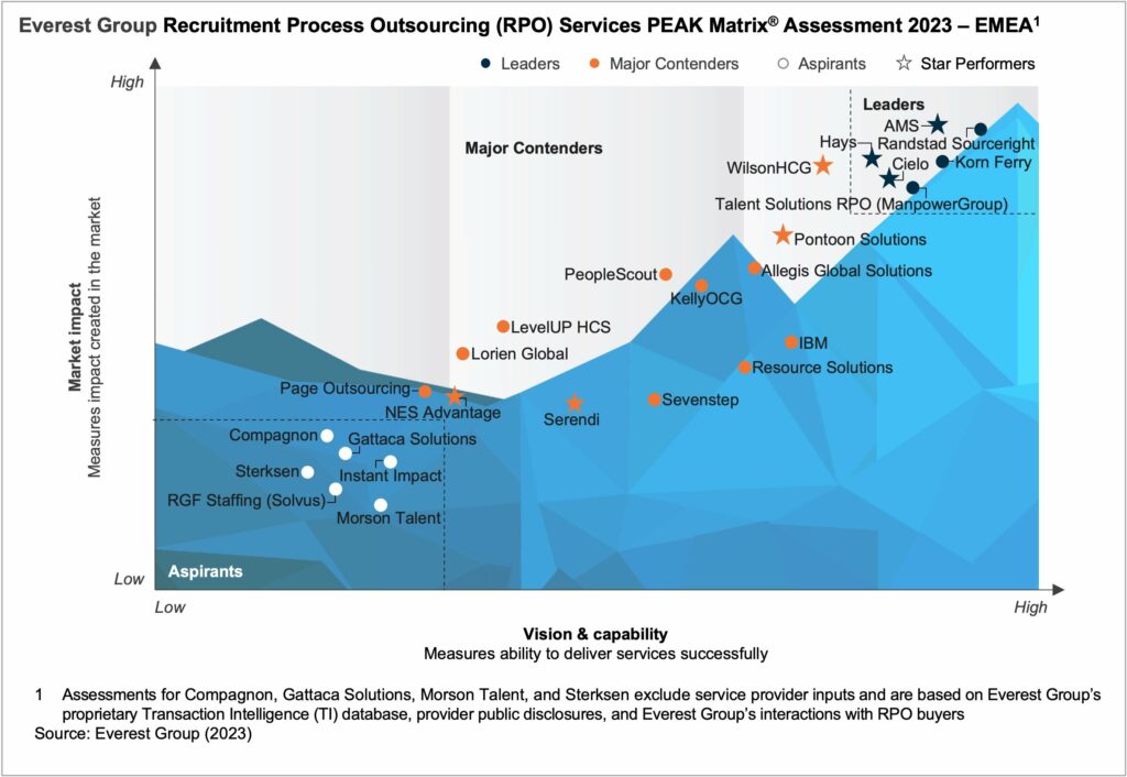 Hays war bereits im letzten Jahr „führend“ im RPO-Sektor. Diese führende Position konnte weiter ausgebaut werden. Hays ist auch 2025 in der EMEA-Region im Vergleich mit 26 bewerteten Dienstleister als „Leader“ eingestuft.